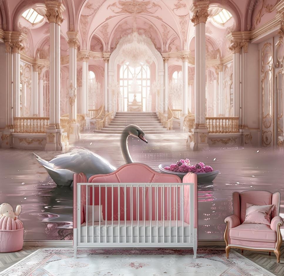 Swan Princess Mural Backdrop Pink Royal Interior Wall Wallpaper Customizable in The Lake Decals Removable