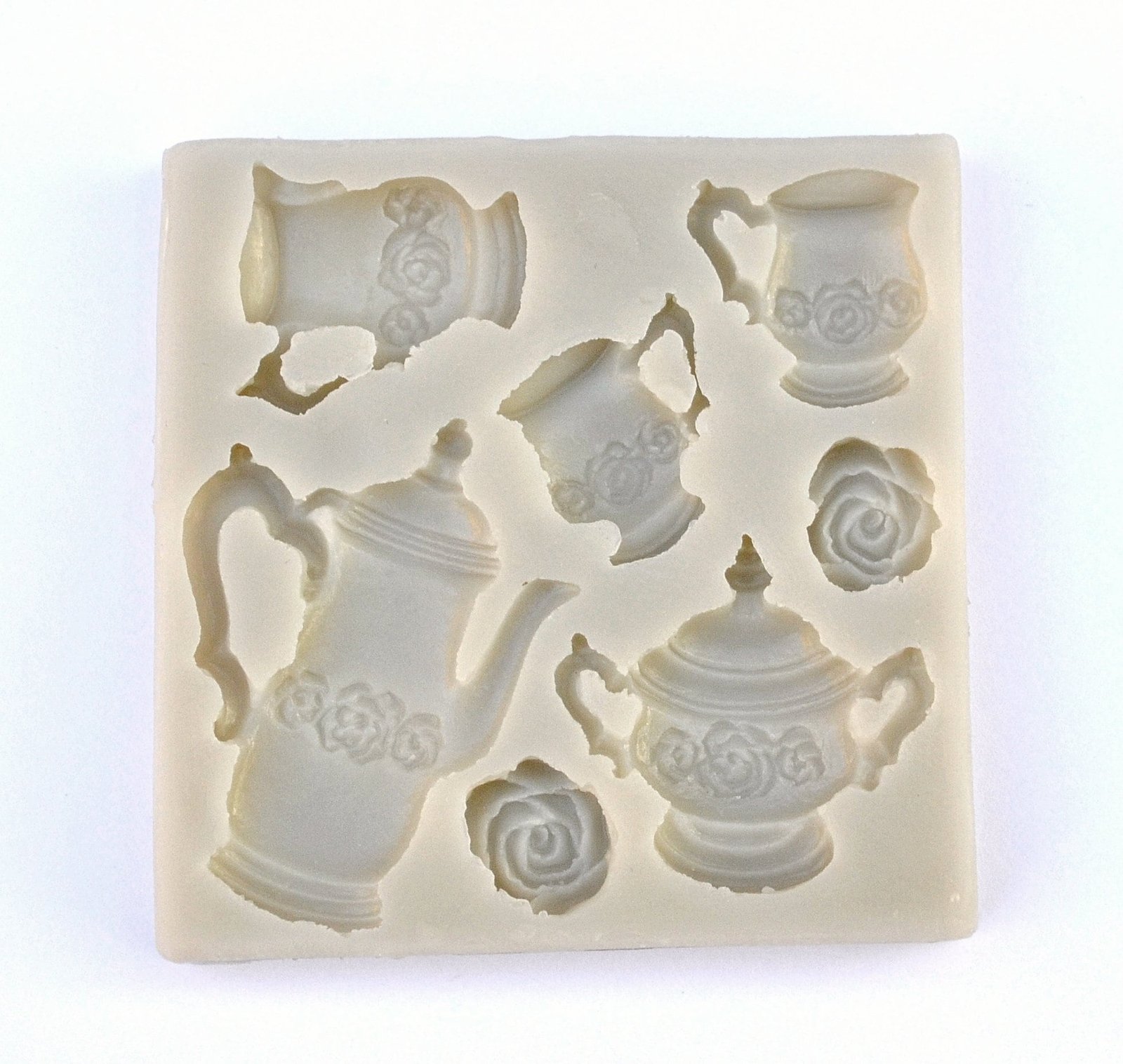 Tea Party Mold, Tea Pot, Cups & Roses Fondant Mold, Highly Detailed Silicone Chocolate Resin Polymer Clay Cupcake Decor