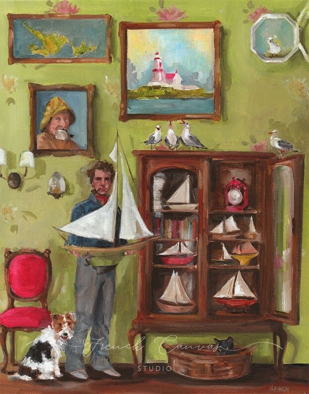 The Lighthouse Keeper, Fine Art Print, Giclee, Whimsical French Canvas Studio, Wall Art, Seaside