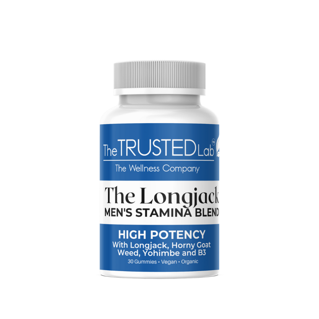 Stay on top of your vigor with The Trusted Lab’s Longjack Men’s Stamina Blend. Boost your sexual stamina naturally with our Longjack Men’s Stamina Blend! Say goodbye to low libido and hello to increased endurance and performance. Our blend features 100% organic and all-natural herbs that have been used for centuries to improve men’s sexual health. You don’t need to resort to drugs when you have a safe and natural alternative. Our Longjack Blend combines Horny Goat Weed, Yohimbe, B3, and Longjack, all of which are carefully selected and lab-tested for quality. You have the option to purchase individual bottles or choose our Share and Save Box for even greater savings. Get back to your prime with our trusted and effective formula! As more and more research is solidified about supplements, our products will continue to be a source of high-quality, pure ingredients that you can count on. *Please note we are unable to issue any refunds, returns, or exchanges on the Share and Save boxes.* Our Longjack Men’s Stamina Blend is specially formulated for men with key nutrients that address overall health. Longjack Men’s Stamina Blend Ingredients: Organic glucose syrup (wheat), organic cane sugar, pectin, citric acid, ascorbic acid, natural flavors, natural colors (organic concentrated apple, organic carrot, organic pumpkin, organic black currant), industrial hemp, Long jack, B3, Horney Goat Weed, Yohimbe, D3 Organic Glucose Syrup does not contain gluten and registers as Gluten-Free. Fast-acting. High absorption and bio-availability. Purity tested. Free of harsh metals, pesticides, and harmful solvents, GMOs, Parabens, Phthalates, and artificial coloring. Made in the USA. Take 1-2 gummies when needed. When to use: When needed. How Often: Daily. Absorption: Allow 15 minutes for maximum absorption. Always listen to how your body feels and adjust accordingly.All of our powders and other wellness products are tested for heavy metals, residual solvents, mycotoxins, and nutrition label verification Lab TestsThese statements have not been evaluated by the food and drug administration (FDA). These products are not intended to diagnose, treat, cure, or prevent any disease. Talk to your doctor before use if you are pregnant, breastfeeding, nursing, or if you have any medical condition or health concerns.