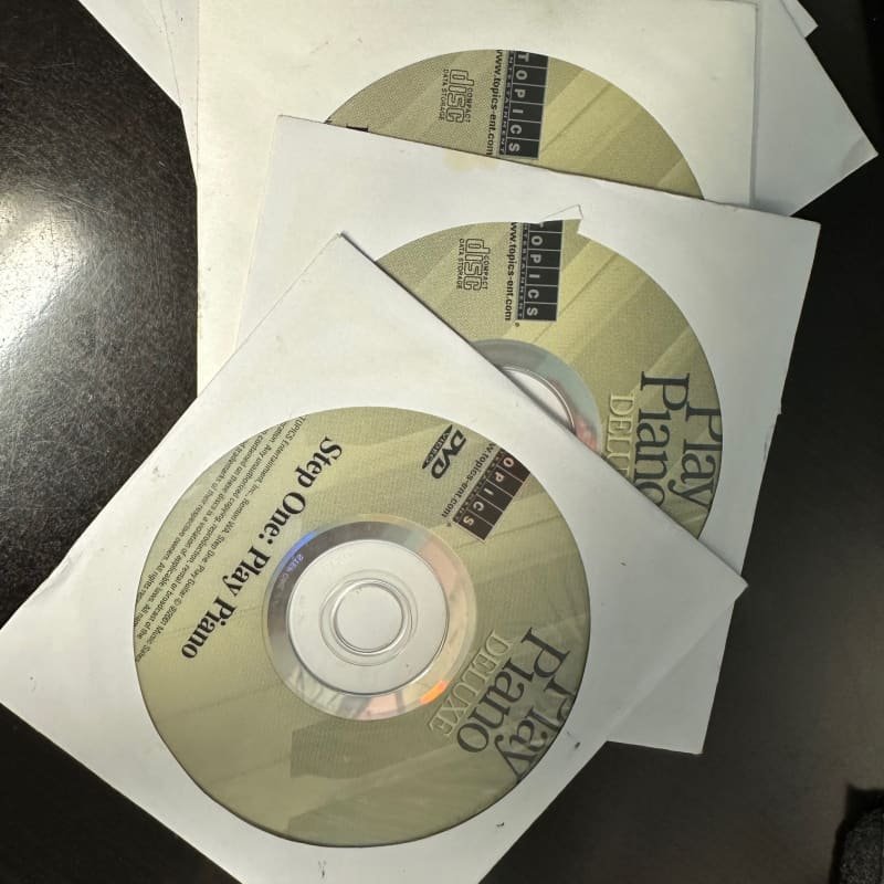 Set of 6 DVD’s – Step One: Play PianoVirtuoso Piano TrainerKeyboard FoundationPlay PianoEnjoy Playing PianoKeyboard ImproverCd’s look like they’ve …