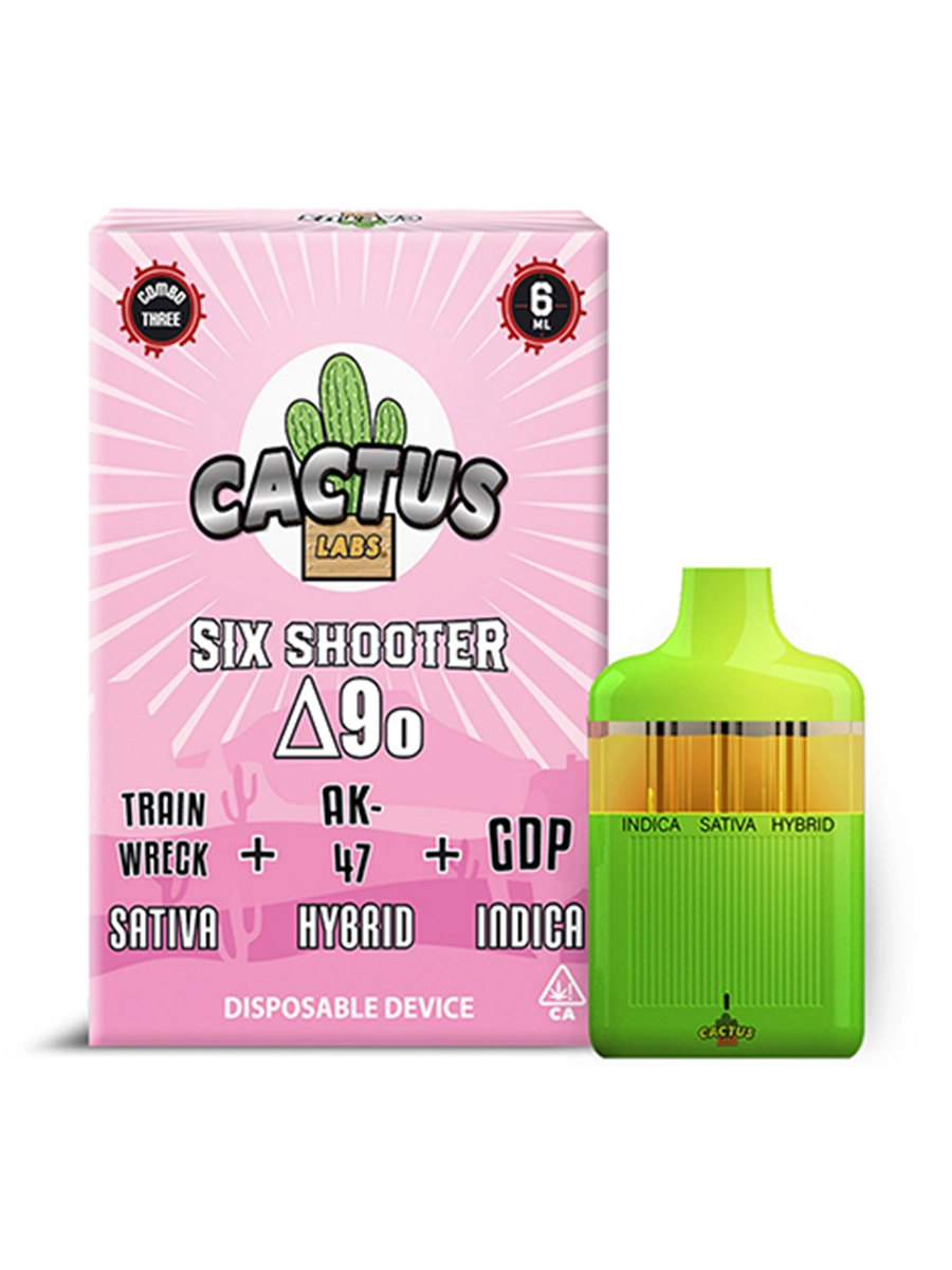 By utilizing the Train Wreck | AK47 | GDP Cactus Labs Six Shooter D9o you may select from strain combinations. This ensures that there is always an exciting flavor to experience. With the simple flick of a switch, change the strain you’re smoking on the fly. It delivers a more diverse and customizable vaping experience. It is a must-have for anyone who is passionate about hemp and who wants to experiment with different strains. You can order a Train Wreck | AK47 | GDP D9o as soon as possible from our online head store. How to Use Click the button five times to turn it on after placing the mouthpiece in your mouth. Press again to inhale vapor continuously.