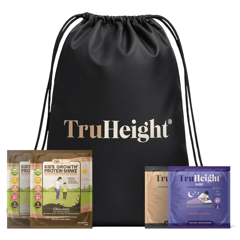 WHAT’S INSIDE TruHeight Branded Bag: to carry your essentials (and show off a little) Chocolate & vanilla protein sample (ages 5+): 8g of protein and 15+ essential vitamins & minerals? You’ve got to at least try it. Growth Gummy Sample (ages 5 to 24): One of our best-sellers and your first chew to a more nutritious you. Sleep gummy sample (ages 4+): cap off your TruHeight intro with a smoother bedtime routine