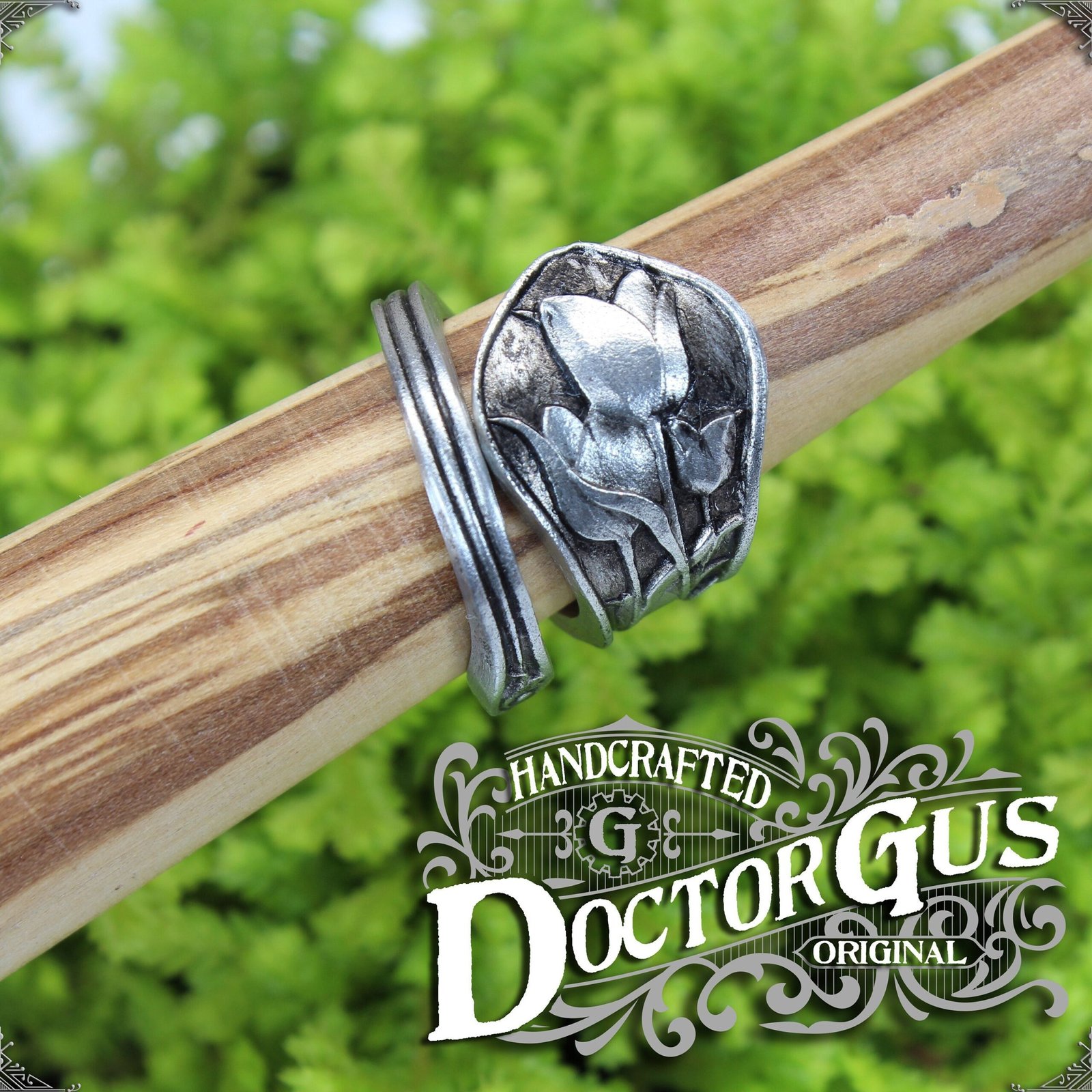 Tulip Ring – Adjustable Wrap Style Handcrafted Pewter By Doctor Gus Beautiful Floral Antique Inspired