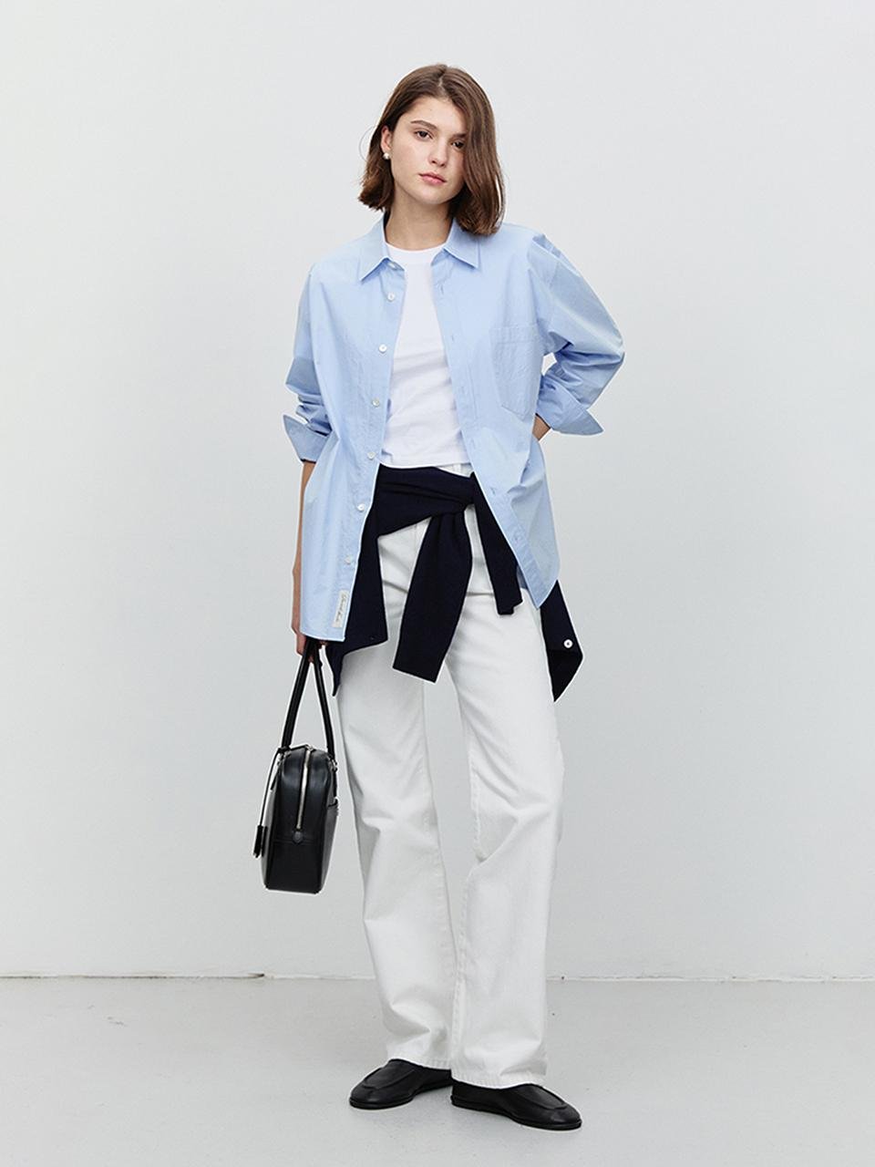 Unisex Paperly Cotton Oversized Shirt [Soft Blue] (UDSH5A107B1)