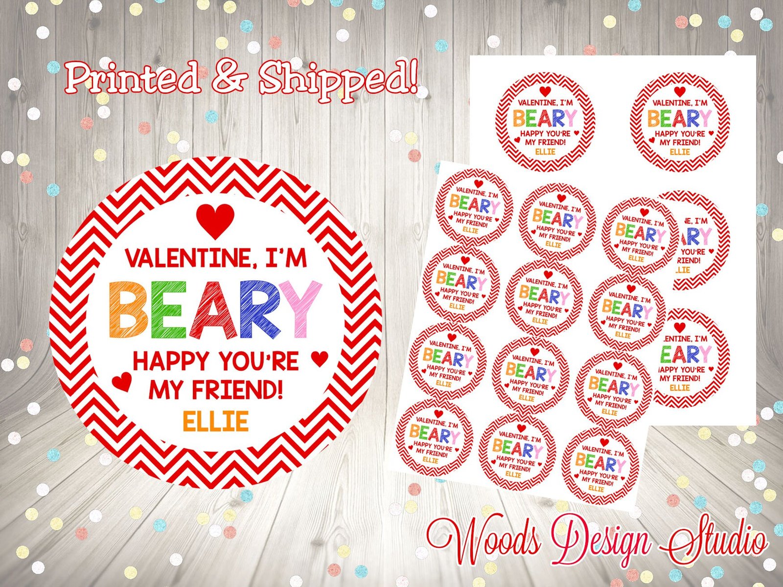 Valentine Stickers // Beary Happy Friend Gummy Bear Classroom Favor Choice Of Size Personalized Printed Shipped