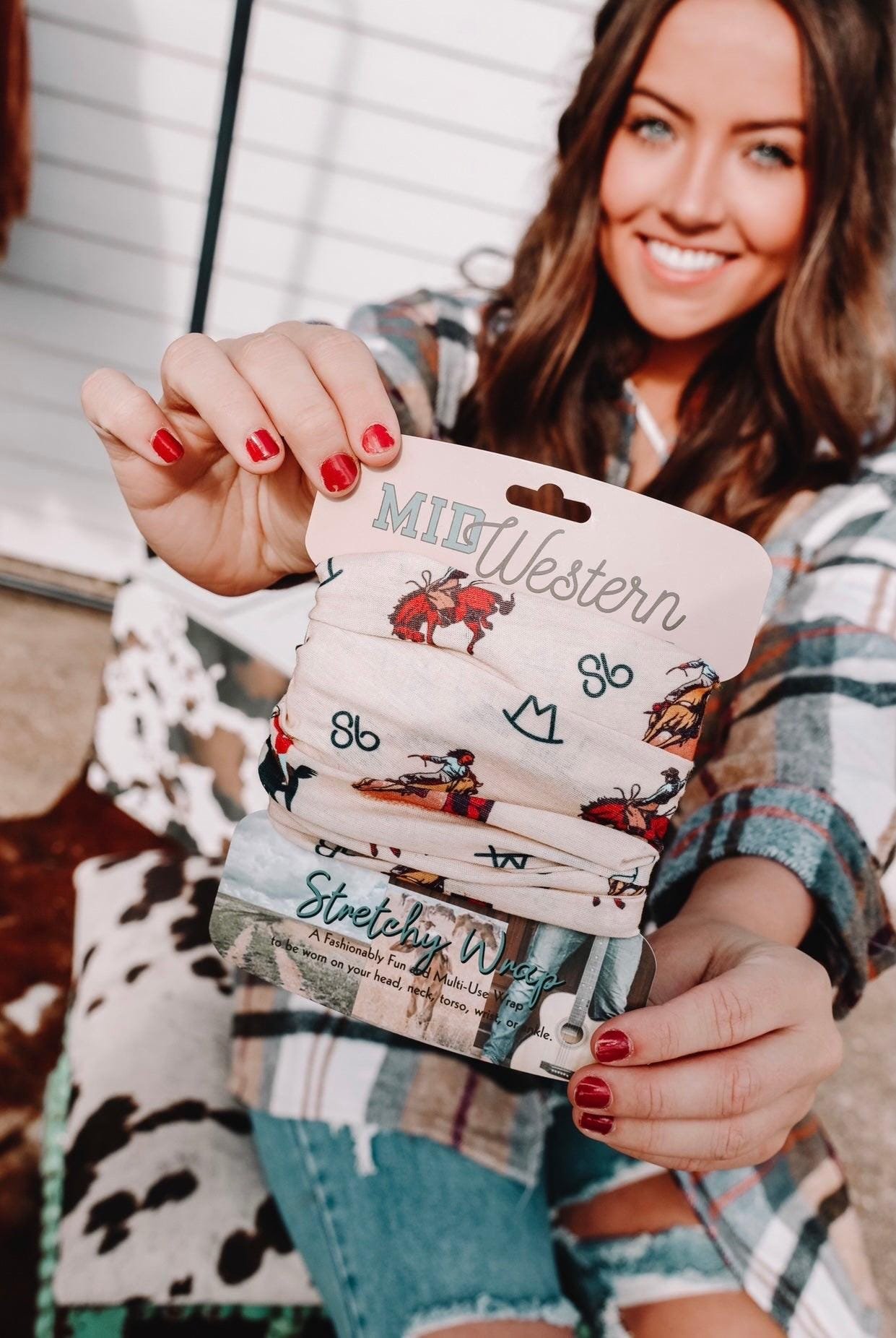 These stretchy wraps have a vintage cowboy pattern, & multiple uses like ponytail holders, headbands, wear as gaiters or handkerchiefs around neck, ankle bracelets & so many more! You’ll love how they are lightweight, soft & extremely stretchy while holding in place. Stock up on all of our patterns so you don’t find yourself somewhere without one! Vintage Cowboy Hair Stretchy Wrap
