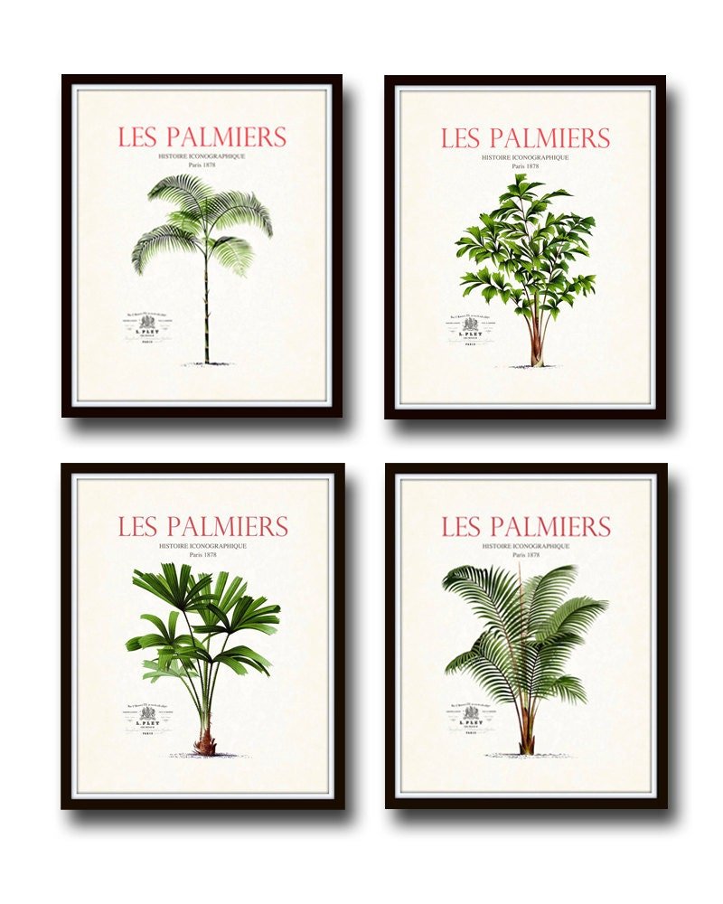 Vintage French Palm Tree Print Set No. 2, Giclee, Art Prints, Beach Decor, Coastal Botanical Set, Collage