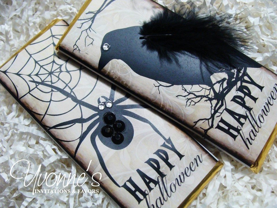 Vintage Halloween Candy Bar Wrappers/Assembled Chocolate Favors-Halloween Gothic Rustic Design-Crow-Spider-Halloween Party Favor