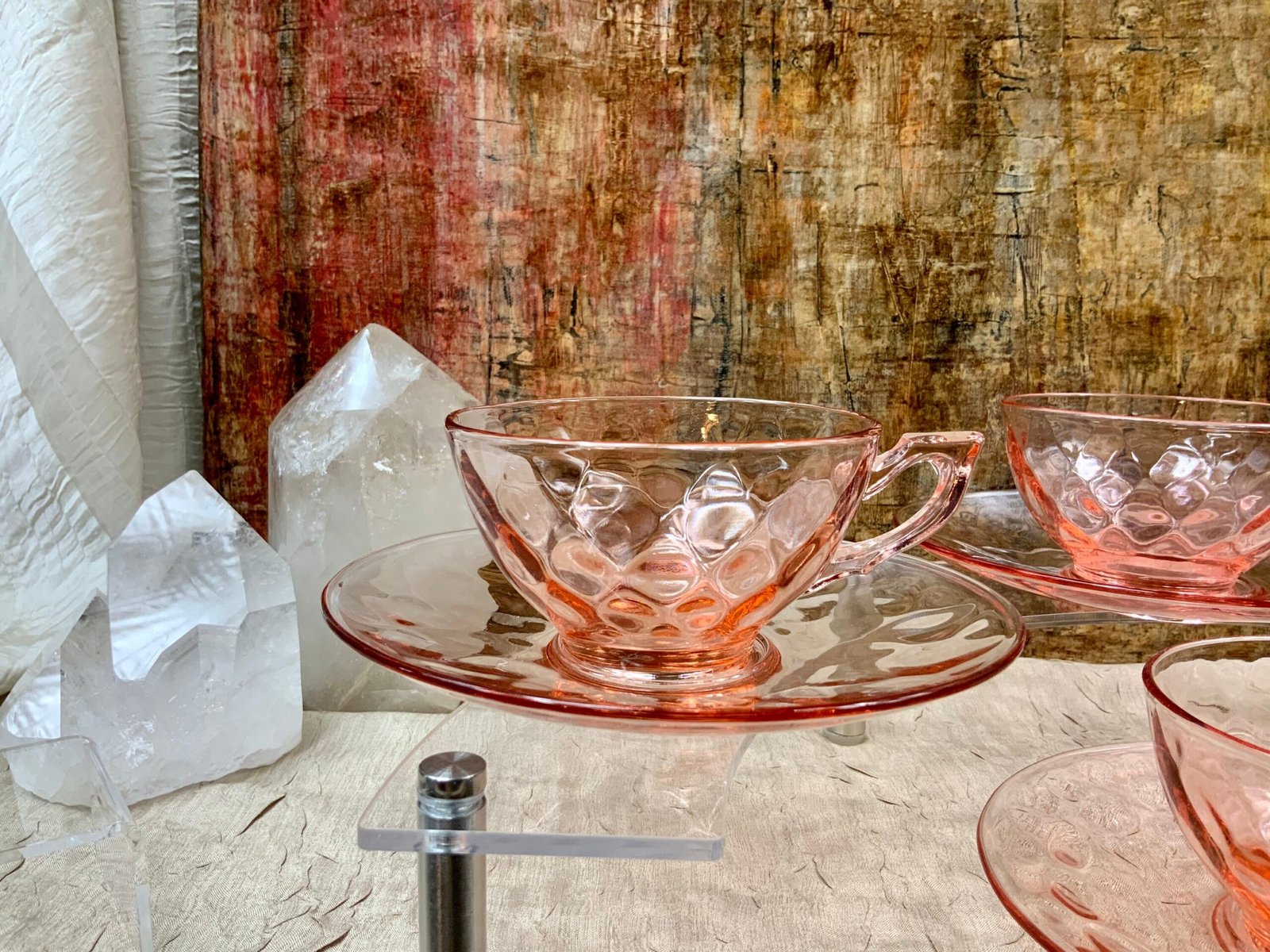 Be the first to review “Vintage Heisey Yeoman Pink Flamingo Cup & Saucer, Yeoman, Pink, Diamond Optic Stem 1184, Please Read Description”