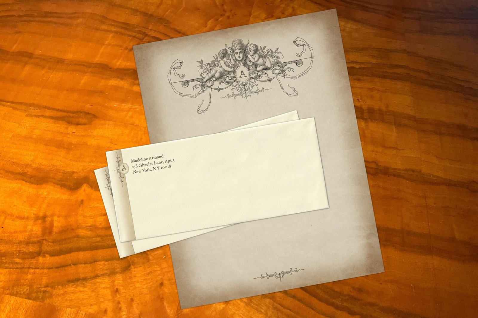 Whispering Cherubs, Luxurious Gothic Stationery, Personalized & Handcrafted, 12 Sheets/10 Envelopes