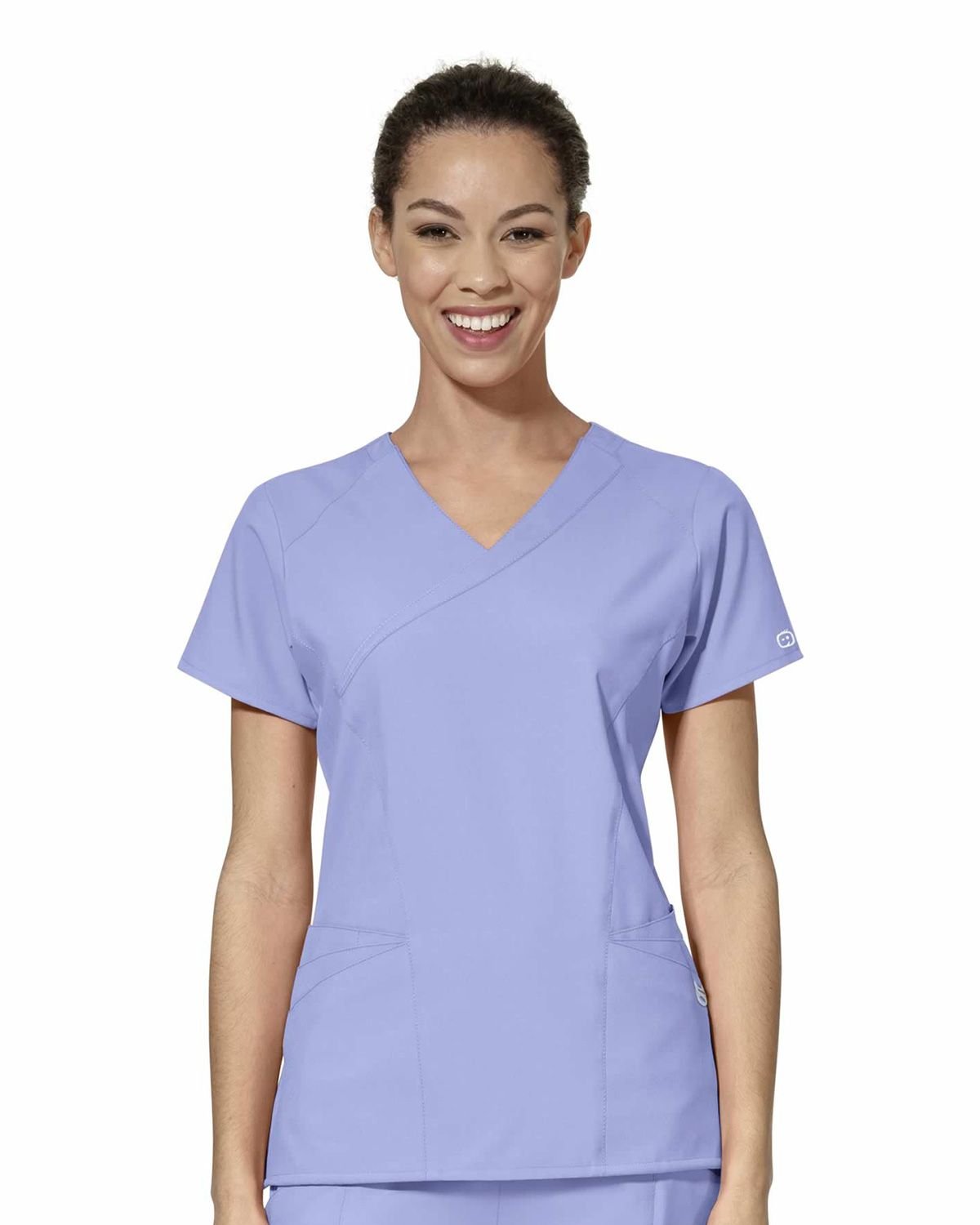 WonderWink 6455 Women’s Mock Wrap Top – Ceil Blue – 5XL