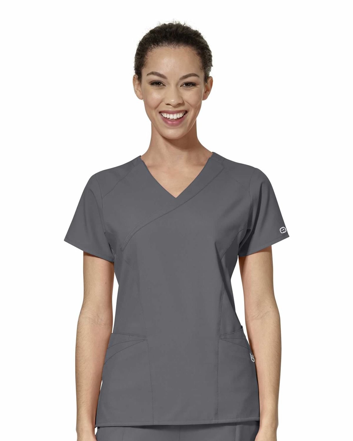 WonderWink 6455 Women's Mock Wrap Top - Pewter - XS