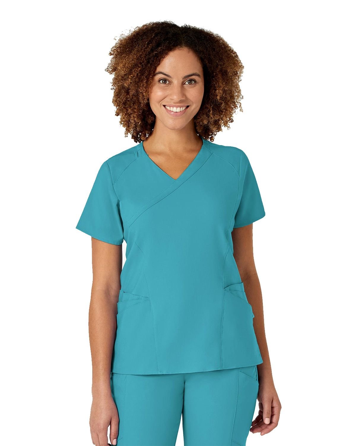 WonderWink 6455 Women’s Mock Wrap Top – Teal Blue – XS